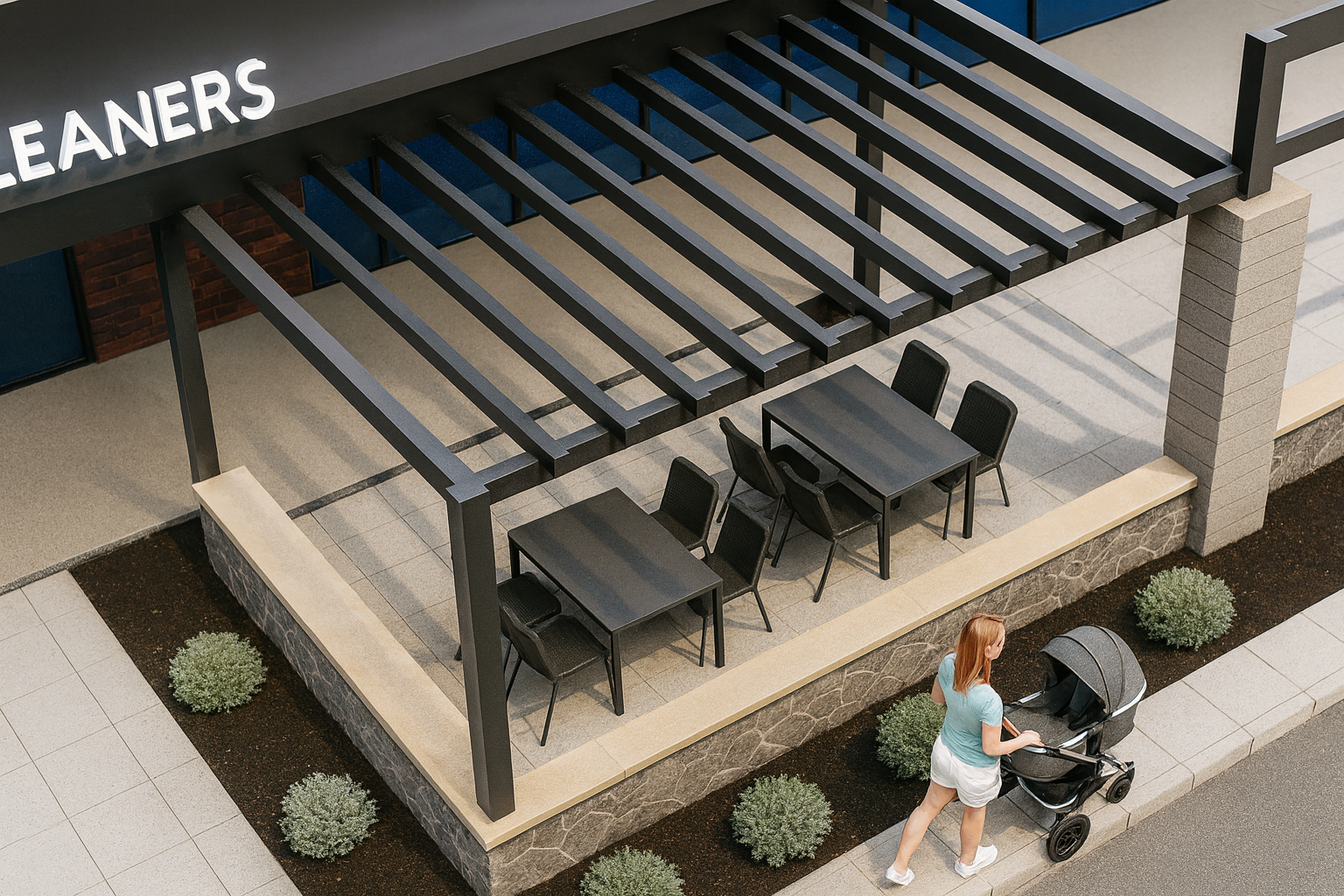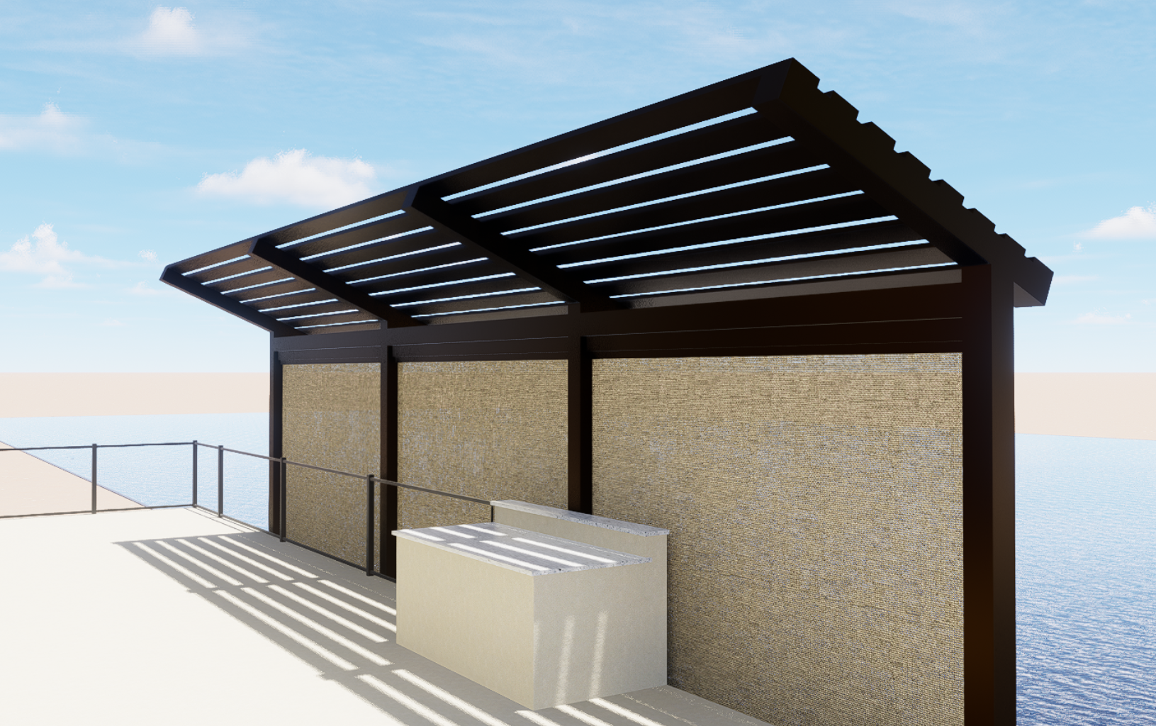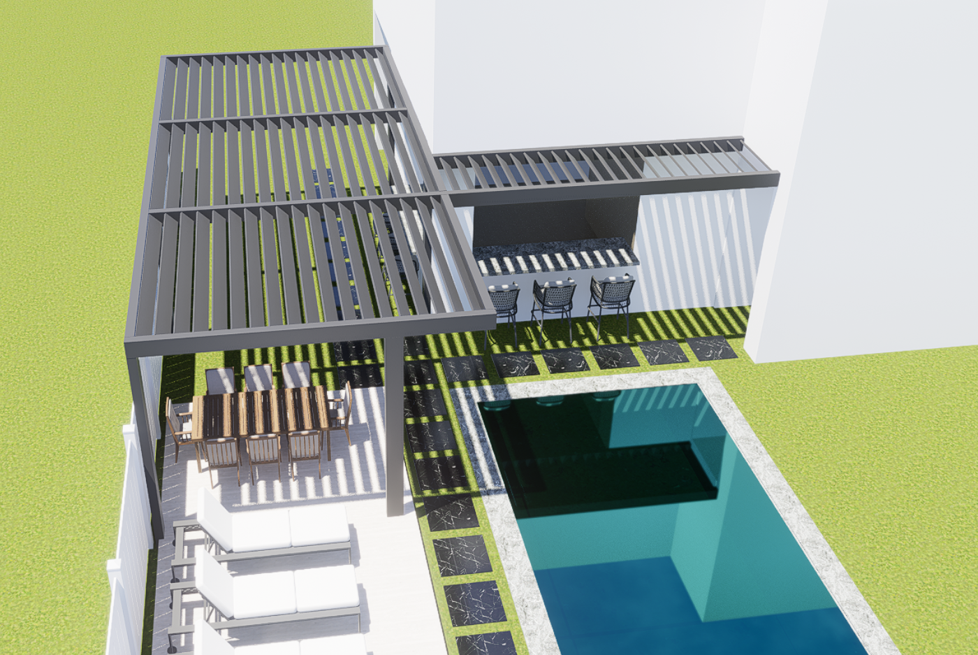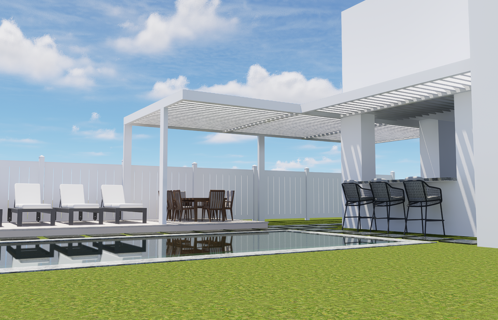Creating these renderings (shown below) is the best way we can clearly display our thoughts for an area. They are also a way to promote discussions and visualization for an area or project before time and money is spent on architecturally approved shop drawings. They provide a way to test and display color options, beam configuration, sun exposure and more.